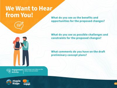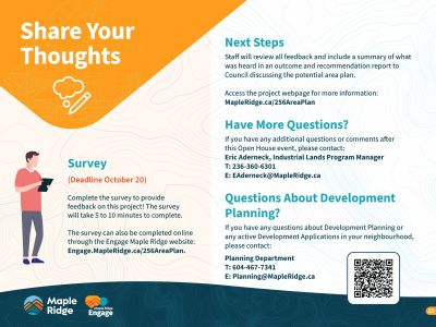 - Open House: Wednesday, October 8, 4-7pm, Maple Ridge Library (Fraser Room), 22470 Dewdney Trunk Rd.