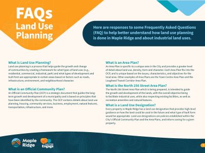 For additional information, including area maps, benefits, and attributes, refer to the summary boards and general planning and land use Frequently Asked Questions in the Document Library on this page.